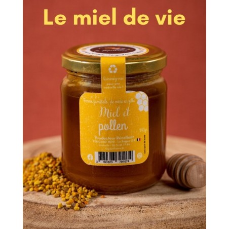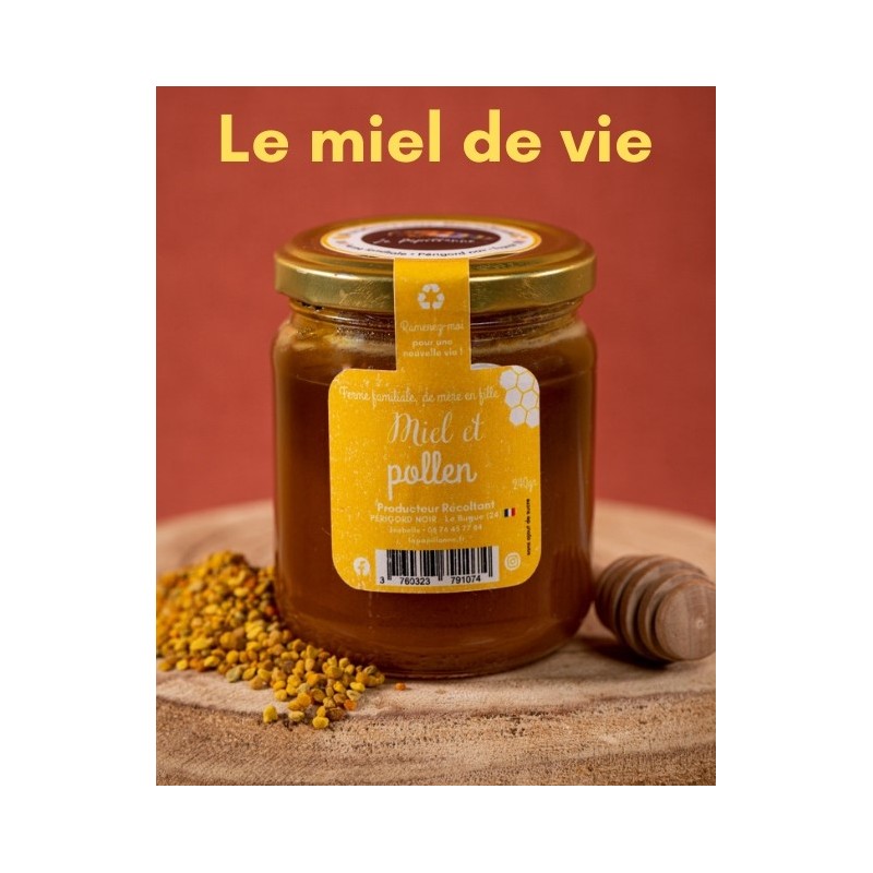 Ensemble, le miel et le pollen composent une préparation gourmande et énergisante, parfaite à déguster au petit-déjeuner, dans une tisane, un smoothie ou simplement à la cuillère.